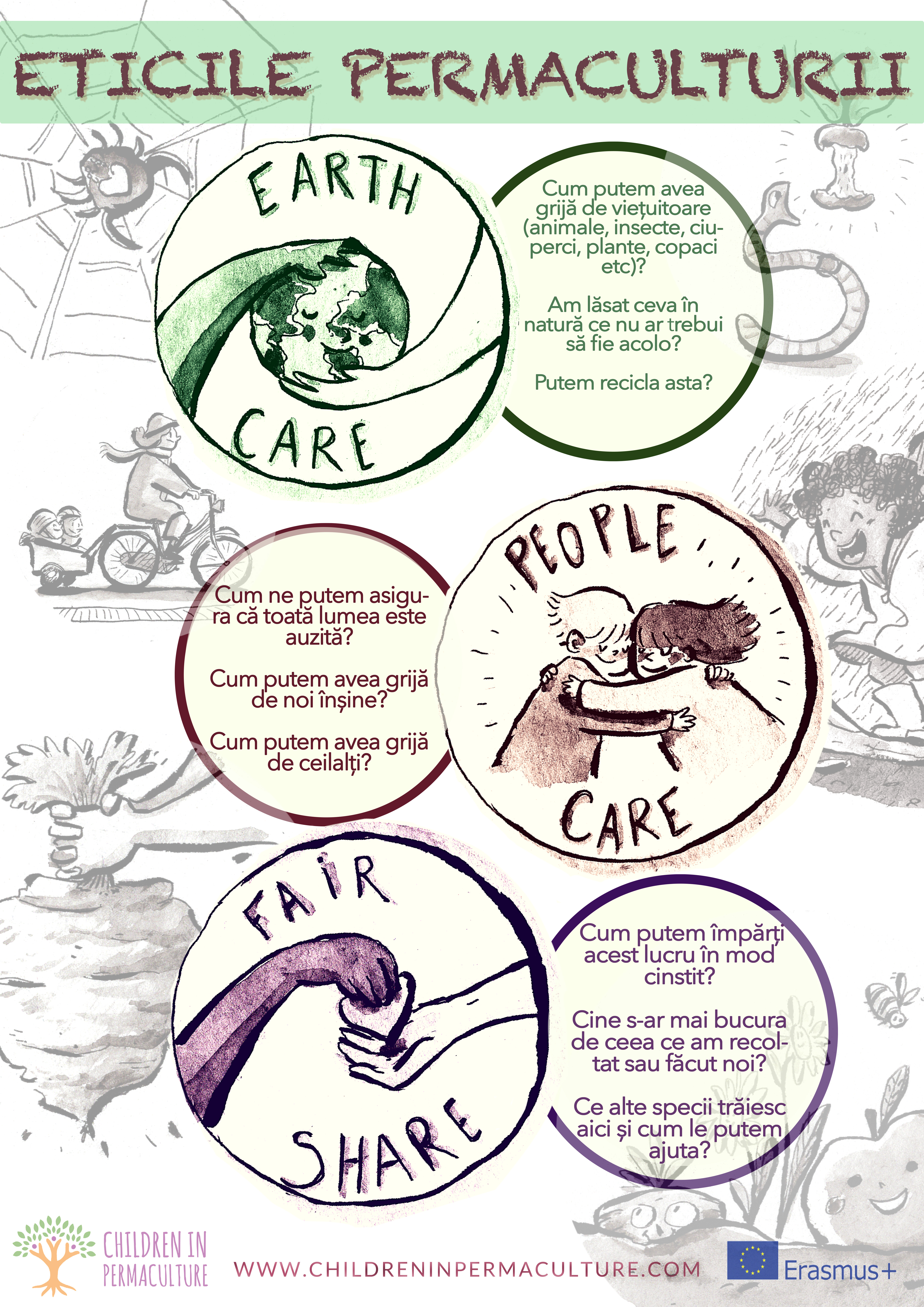 Proiectul Children in Permaculture (CiP) a început ca un proiect Erasmus+ in cadrul caruia, sapte organizatii europene au lucrat impreuna pentru a imbunatati educatia copiilor in contextul formal, informal si non-formal, prin dezvoltarea unor resurse cum ar fi studiile de caz, curricula, planuri de sesiune, filmele si alte resurse. Aceste resurse au fost create pentru a sustine educatorii, invatatorii, practicantii de permaculture, parintii si alti profesori sa practice